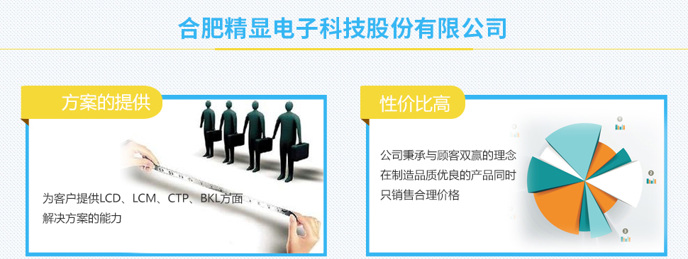 ?合肥精顯電子科技股份有限公司成立于2012年,由液晶行業(yè)知名企業(yè)廈門精顯電子有限公司投資建設(shè),是一家研發(fā)、生產(chǎn)、銷售高品質(zhì)液晶屏(LCD)、液晶顯示模塊(LCM)、背光(LED)、電容式觸摸屏(CTP)等節(jié)能環(huán)保產(chǎn)品并能為顧客提供解決方案的高新科技企業(yè)。 ?公司占地55畝,擁有建筑面積超過20000平米和潔凈廠房5400平米。 ?公司擁有一個超過15年以上LCD行業(yè)運營制造經(jīng)驗的團(tuán)隊。 ?公司獲得研發(fā)專利20余項。 ?公司通過C-TPAT認(rèn)證,ISO9001:2008認(rèn)證,產(chǎn)品通過了ROHS、REACH。 ?我們產(chǎn)品廣泛應(yīng)用于智能儀表(水表,電表,氣表)、家電、儀器儀表、計量器械、文教 器具、UPS電源、智能手機(jī)機(jī)、平板電腦等電子產(chǎn)品的顯示和控制。目前我們已樹立了良好的品牌形象,并與眾多公司(如GE, Ja...更多>